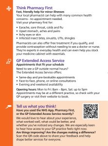 Need to see a GP outside normal hours? The Extended Access Service offers: